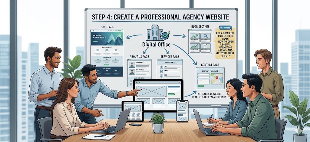 Your website acts as the digital office for your business. If you want to succeed in how to start a digital marketing agency, building a professional website is essential.